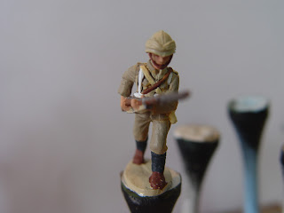 In map above and photo below, Armenian LI is overwhelmed by the Roman LI and HC and soon routed. Armenian horse archers decide discretion is the better part of valor, do an about face and evade away from the more numerous and better fighting javelin armed Roman light cavalry. In the middle, the skirmishers launch missiles at each other and the Armenian javelinmen melee the Roman Archers in an attempt to take them out.